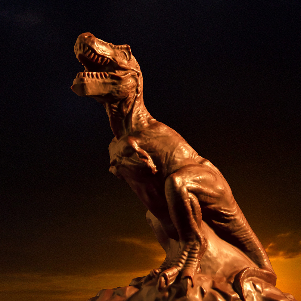 肉食恐竜と植物食恐竜をかたどったチョコレートを
