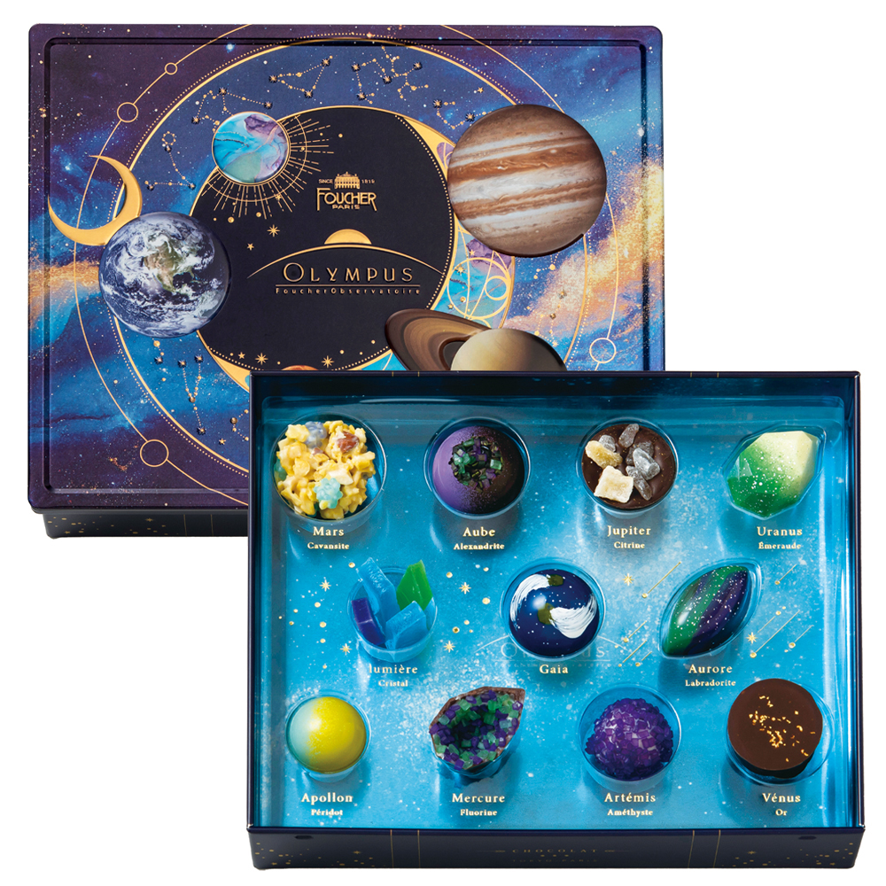 大地の女神ガイアを司る惑星、地球。青い海と緑の大地をイメージした、宝石のように美しいショコラアソート。