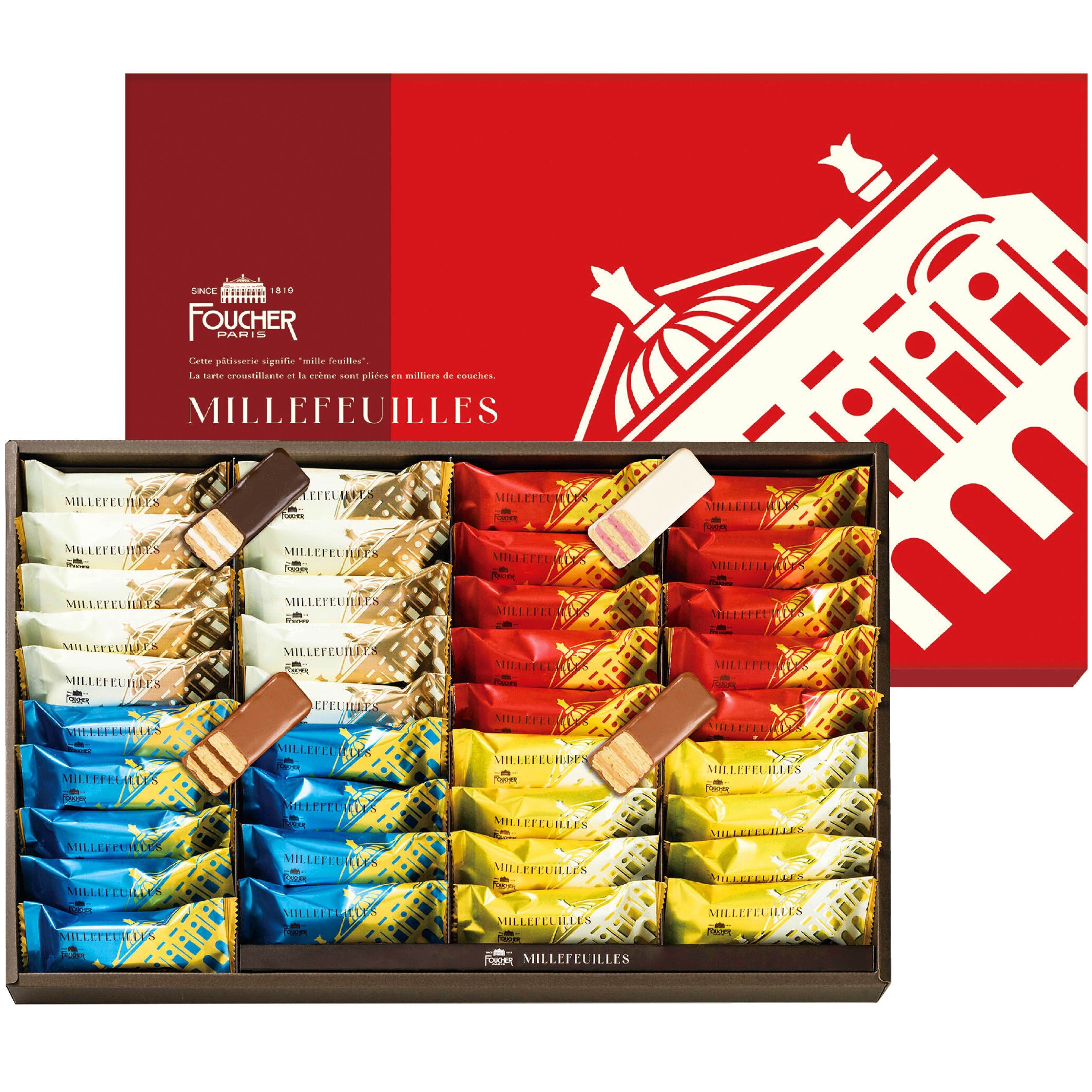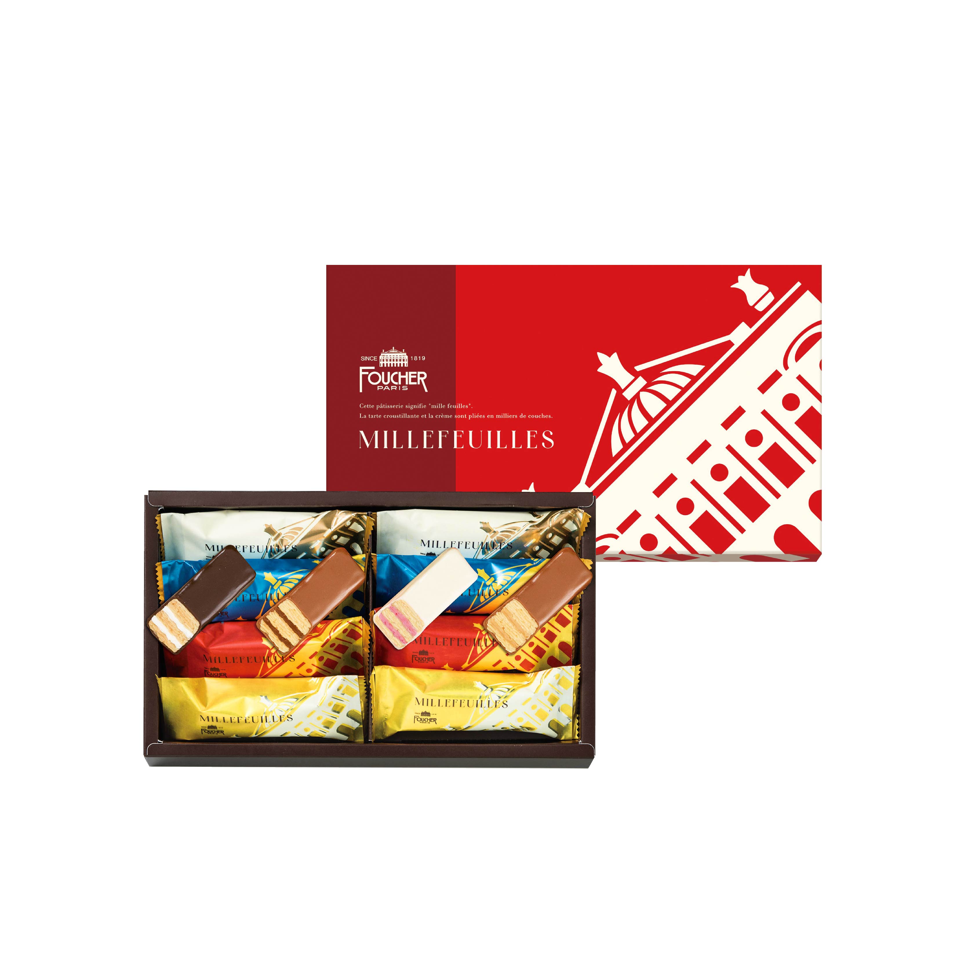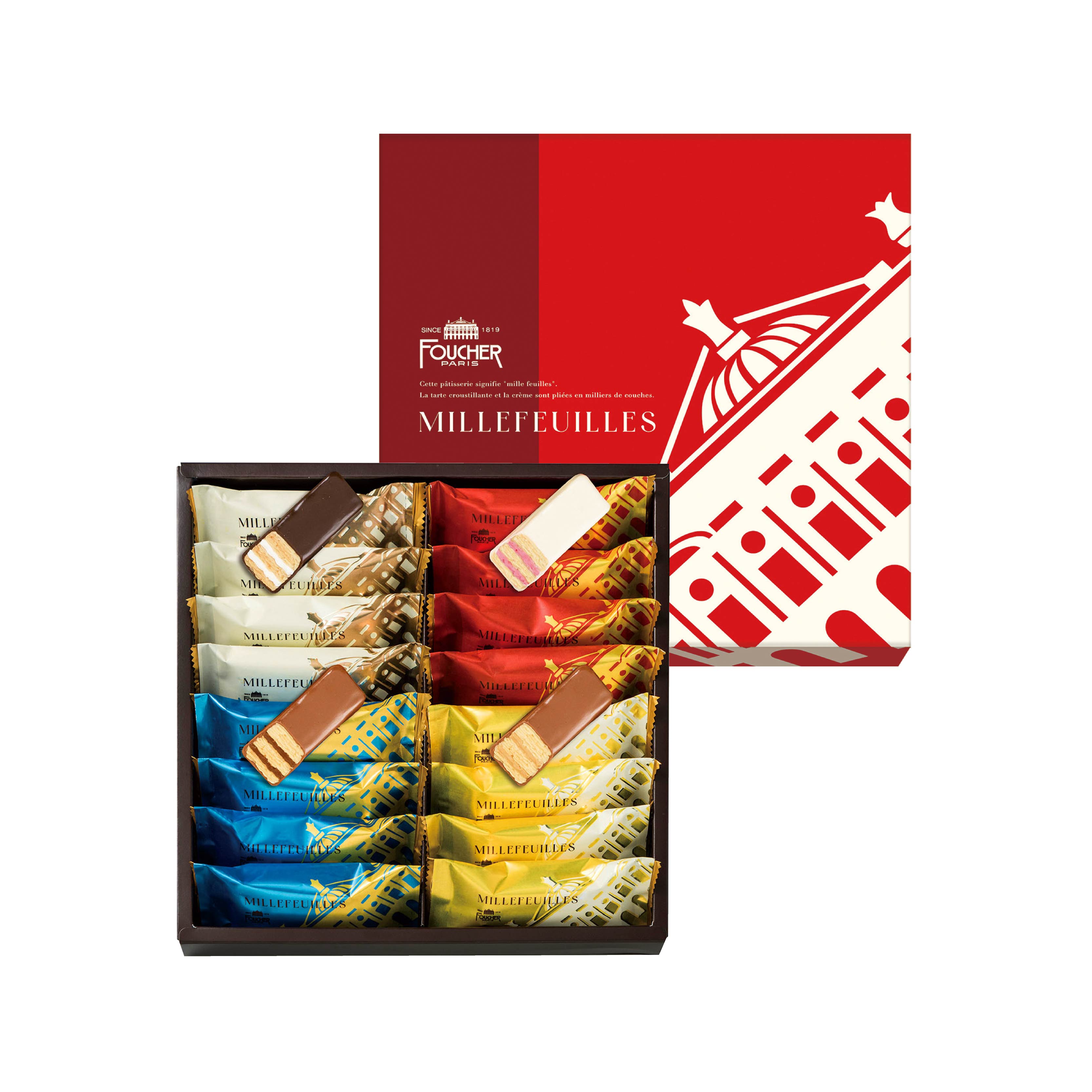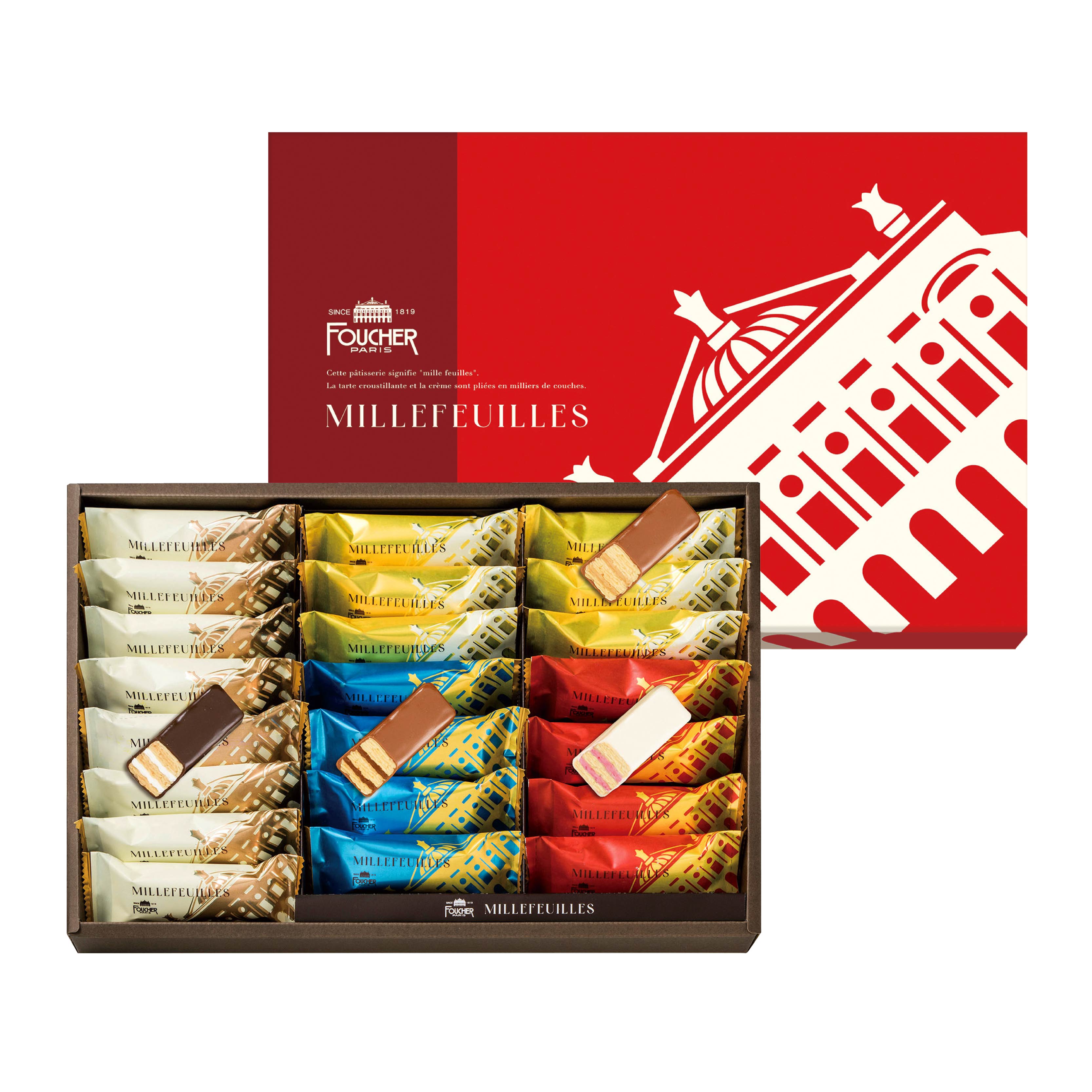MILEEFUILESサクサクと焼き上げた生地を薄く積み重ね、チョコレートをコーティングした”千枚の木の葉”という名のパイ菓子です。 バター100%のパイ生地を使い、風味豊かに仕上げました。